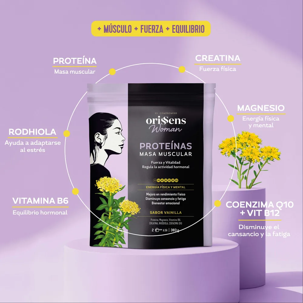 La fórmula Orissens Woman ha sido creada pensando en las necesidades reales de las mujeres a partir de los 40, en un momento en el que el cuerpo y la mente atraviesan nuevos desafíos. Sus ingredientes trabajan en sinergia para acompañarte en esta etapa de cambios aportando fuerza y masa muscular, energía y bienestar general regulando, a su vez, la actividad hormonal.